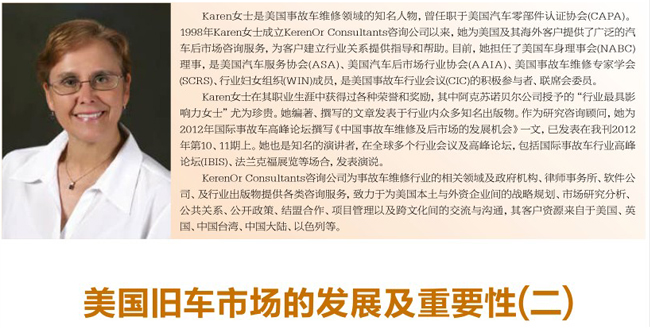 美國(guó)舊車市場(chǎng)的發(fā)展及重要性 2013-07-31 11757 國(guó)聯(lián)邦法律強(qiáng)制性規(guī)定:車輛經(jīng)營(yíng)企業(yè)及代理機(jī)構(gòu),如保險(xiǎn)企業(yè)、國(guó)家機(jī)動(dòng)車所有權(quán)信息代理機(jī)構(gòu)、車輛回收企業(yè)、廢棄/殘值車場(chǎng)等,需要定期向NMVTIS提交報(bào)告。另外,一些個(gè)人性質(zhì)的賣主也須向NMVTIS數(shù)據(jù)庫(kù)提供車輛報(bào)告。NMVTIS有責(zé)任向公眾公布經(jīng)過授權(quán)認(rèn)可的車輛報(bào)告?zhèn)€人賣主名單。另外,車輛歷史報(bào)告記錄的數(shù)據(jù)信息還包括所有權(quán)問題驗(yàn)證信息(國(guó)家規(guī)定)、里程表檢查數(shù)據(jù)、(保險(xiǎn)公司的)車輛事故歷史報(bào)告等。目前,全美 89%的州為美國(guó)機(jī)動(dòng)車管理部門收集信息,并呈現(xiàn)在NMVTIS中。盡管NMVTIS強(qiáng)調(diào),車輛歷史報(bào)告不能代替有資質(zhì)技師對(duì)車體進(jìn)行的全面檢查報(bào)告,但是對(duì)于舊車消費(fèi)者,在最終決定購(gòu)買舊車時(shí)通常都會(huì)看一看車輛歷史報(bào)告。還有一些舊車經(jīng)銷商把提供舊車歷史報(bào)告作為賣車的噱頭。新車經(jīng)銷商在銷售認(rèn)證二手車時(shí),通常會(huì)把車輛歷史報(bào)告作為各種證書、手冊(cè)的一部分提供給買主。如果經(jīng)銷商不提供歷史報(bào)告,消費(fèi)者也可以通過美國(guó)國(guó)家機(jī)動(dòng)車信息管理系統(tǒng)網(wǎng)站(www.nmvtis.org)獲取NMVTIS授權(quán)的銷售商名單,只需少量費(fèi)用就可以購(gòu)買到完整的車輛歷史報(bào)告,或者以更低的價(jià)格買到歷史報(bào)告中有關(guān)車輛主要受損情況的部分內(nèi)容。