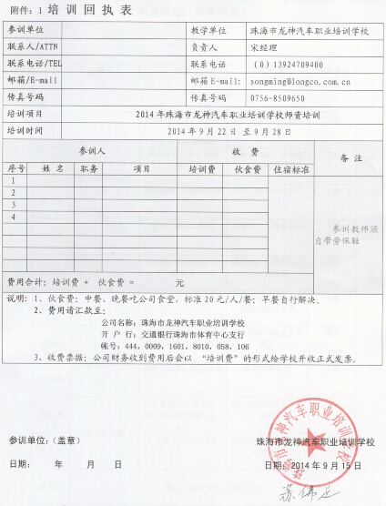 2、報名回執(zhí)表需在培訓(xùn)開始前3日,回傳至我校。