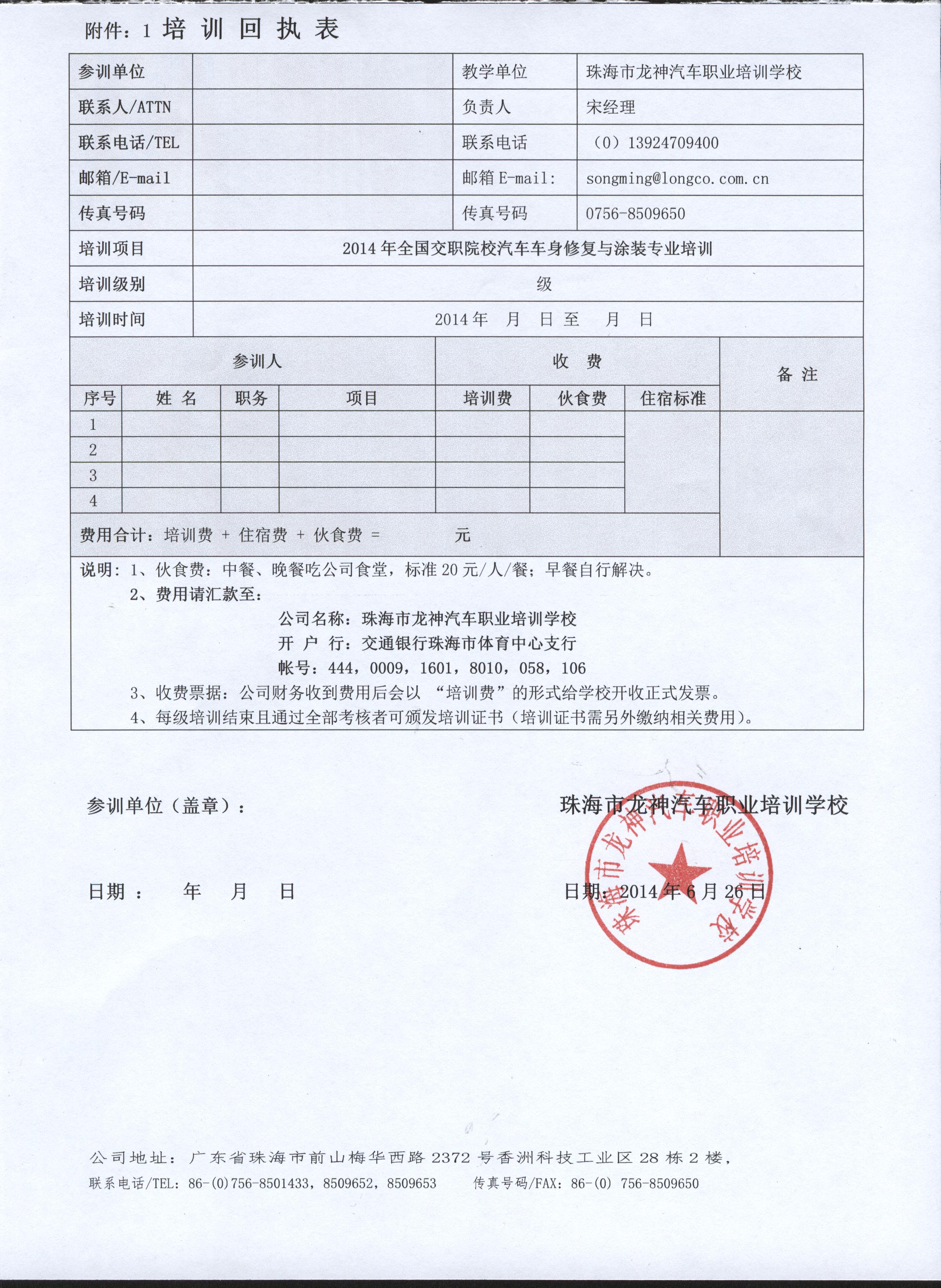 附件:1 培 訓 回 執(zhí) 表