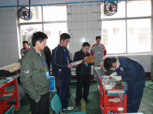 車身涂裝技能大賽面漆噴涂比賽現(xiàn)場 涂裝大賽現(xiàn)場裁判執(zhí)行班評分