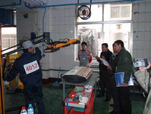 各代表隊選手利用龍神公司提供的鈑噴設(shè)備進行實操