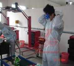1)壓縮機(jī)最好為螺桿式,15 KW以上,每分鐘供氣量不小于2立方米。 2) 各比賽工位要留有壓縮空氣出口2個(gè),連接工具的壓縮空氣軟管要求內(nèi)徑不小于8毫米,長度每根不少于10米,軟管最好能具備防靜電功能; 3)空氣壓力要求0.6-0.8Mpa,要求安裝專業(yè)精密過濾器,保證壓縮空氣干燥、無塵、無水、潔凈,過濾精度應(yīng)達(dá)到0.01微米;4)比賽場地要求至少1臺(tái)烤房,烤房內(nèi)照明完好,視窗清潔,通風(fēng)正常,最好應(yīng)具備二面觀測窗 5)準(zhǔn)備4臺(tái)以上紅外線短波烤燈,保證連續(xù)工作時(shí)間能達(dá)到1小時(shí)以上。