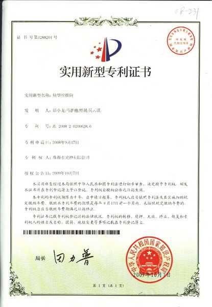 遮蔽紙切紙架專利證書 | ![]() 塊型拉拔鉤專利證書 |